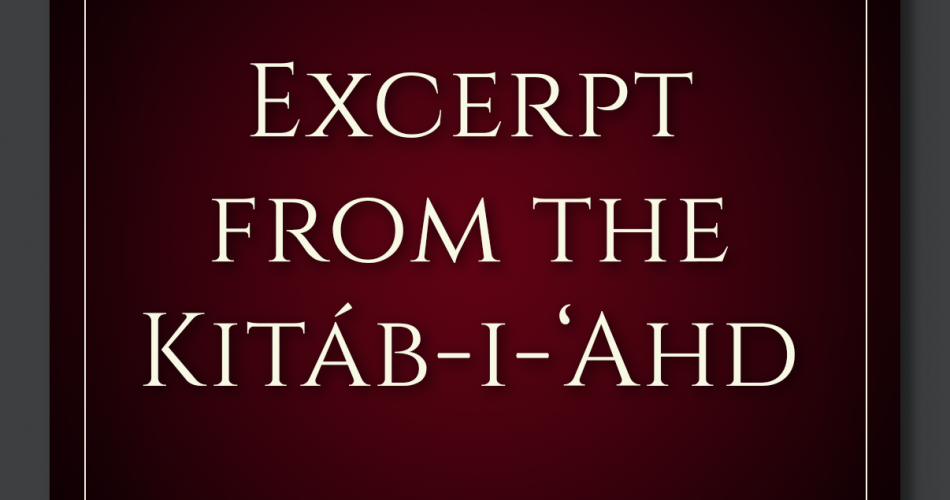 This is an excerpt from Baháʼuʼlláh’s Kitáb-i-ʻAhd, or “Book of the Covenant,” which served as His will and testament. This passage is especially significant in that Baháʼuʼlláh reiterates and emphasizes the appointment of ʻAbdu’l-Bahá as His successor. It is also our first selection which features a mixture of Persian and Arabic.