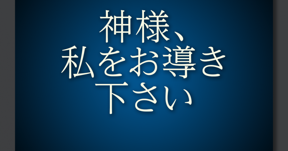 神様、私をお導き下さい。お守りください。私の心の灯を明るくして、私を輝く星となし給え。あなたは偉大なる御方におわし、力に満ち給う御方にまします。