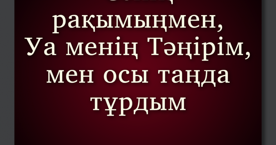 Сенің рақымыңмен, Уа менің Тәңірім, мен осы таңда тұрдым және толығымен Саған сенім артып, өзімді Сенің қамқорлығыңа тапсырып, үйімнен шықтым. Өзіңнің көктегі қайырымдылығыңнан маған Өз батаңды бер, және мені Өз қорғаныңмен жолға шығарып салғаның сияқты, аман-есен үйіме қайта оралуыма да жәрдем ет. Менің бар ойым қашан болмасын Саған арналады. Сенен басқа Құдай жоқ, Бірегей, Еш нәрсемен салыстыруға келмейтін, Бәрін Білуші, Ең Дана.