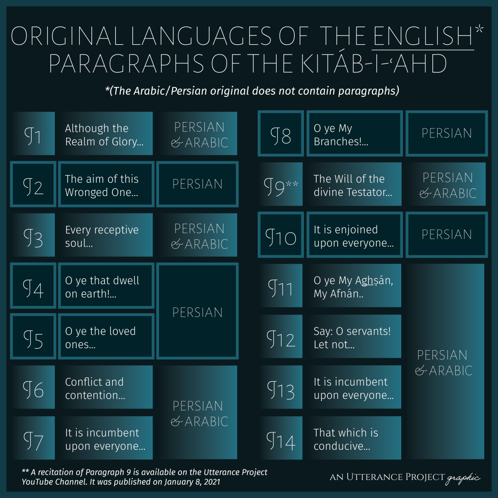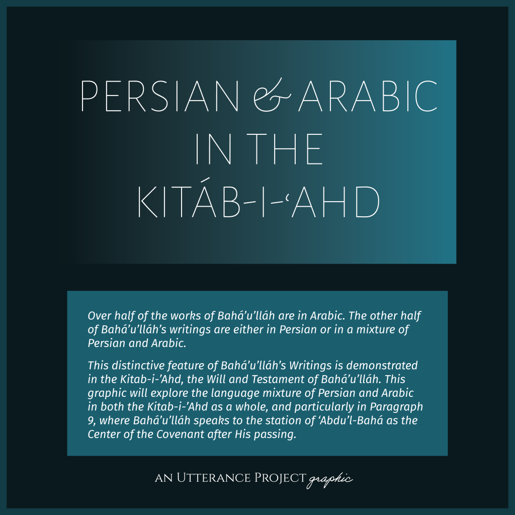 The second graphic we are publishing for the anniversary of the unsealing and reading of the Kitáb-i-‘Ahd is a graphic look at the mixture of languages in the Kitáb-i-Ahd.