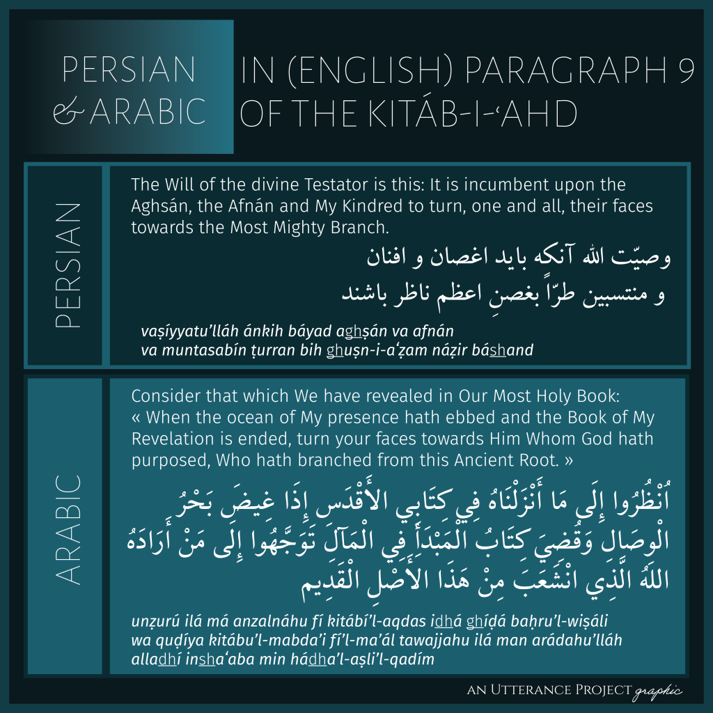The Kitáb-i-‘Ahd was revealed in a mixture of Persian and Arabic.