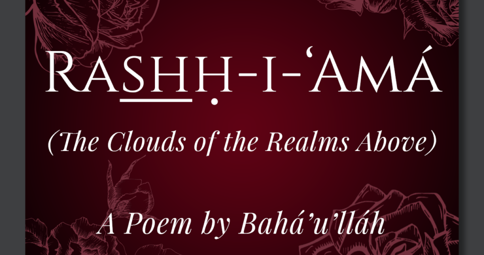 The Utterance Project is delighted to present this recitation of the Rashḥ-i-‘Amá (The Clouds of the Realms Above), one of our most popular requests. This Writing of Bahá’u’lláh was revealed in Ṭihrán, making it one of His earliest compositions known to us thus far. The Rashḥ-i-‘Amá has the distinction of not only being one of the few poems Bahá’u’lláh revealed, but also resembling a kind of prose poem. While it uses decidedly poetic imagery and ample internal rhyme, it does not conform to a consistent meter or rhyme scheme (apart from a monorhyme), thus setting it apart from the more traditional Persian poetry that had been composed up to that time. The authorized English translation retains the original monorhyme by ending every second hemistich with “raining down” (repeated in the original Persian as mírízad), and is mostly set to iambic octameter (with a few shifts to iambic heptameter), but like the Persian does not use a traditional rhyme scheme.