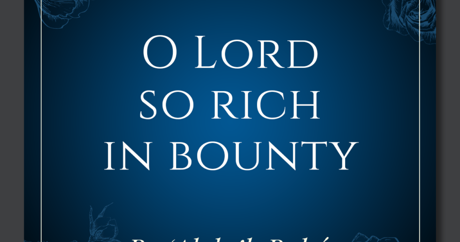 Today, we are thrilled to present you with the second part in this series, “O Lord so rich in bounty,” another poem (this one by ‘Abdu’l-Bahá) with an authorized translation into English. To be more precise, it is a short prayer originally written in the form of rhyming couplets, and it is actually the conclusion to ‘Abdu’l-Bahá’s extensive commentary on the Islamic hadith “I was a hidden treasure,” which He wrote as a young man and is perhaps the first major work we have from Him.