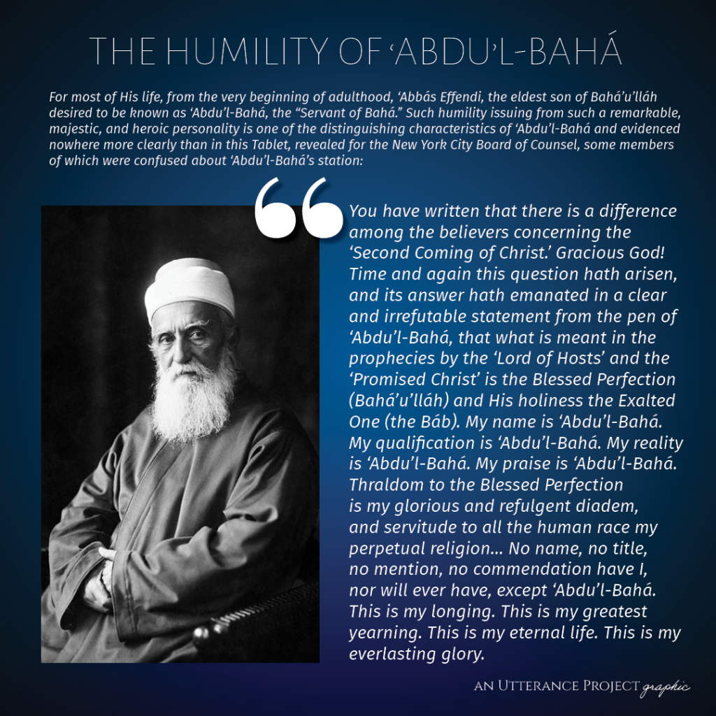 To commemorate the imminently approaching centenary of the passing of ‘Abdu’l-Bahá, the Utterance Project is delighted to publish our final selection in the Centenary Collection: a recitation of the Tablet of Visitation which ‘Abdu’l-Bahá composed for Bahá’ís to say in His honor. While it is often read at His Shrine, it is also used in private prayer.