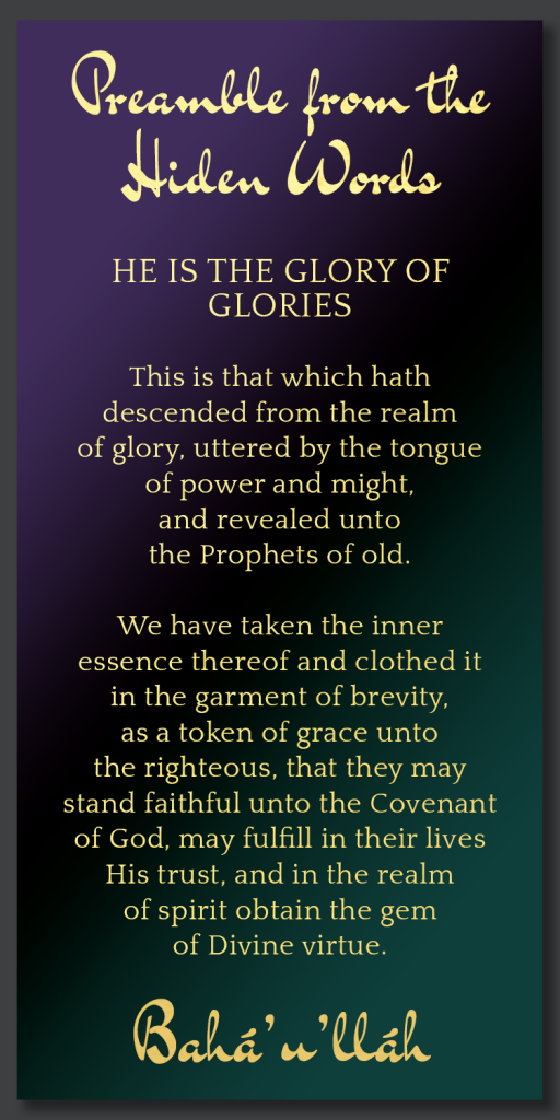 The Hidden Words of Bahá’u’lláh are short yet powerful utterances, 71 of them revealed in Arabic and another 82 in Persian, which provide us with a kind of spiritual roadmap to living the life that is best for us.
