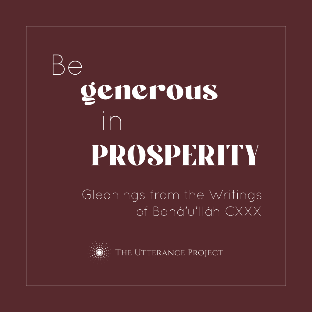This booklet was prepared by The Utterance Project as a supplement for the publication of the video for “Be Generous in Prosperity.”