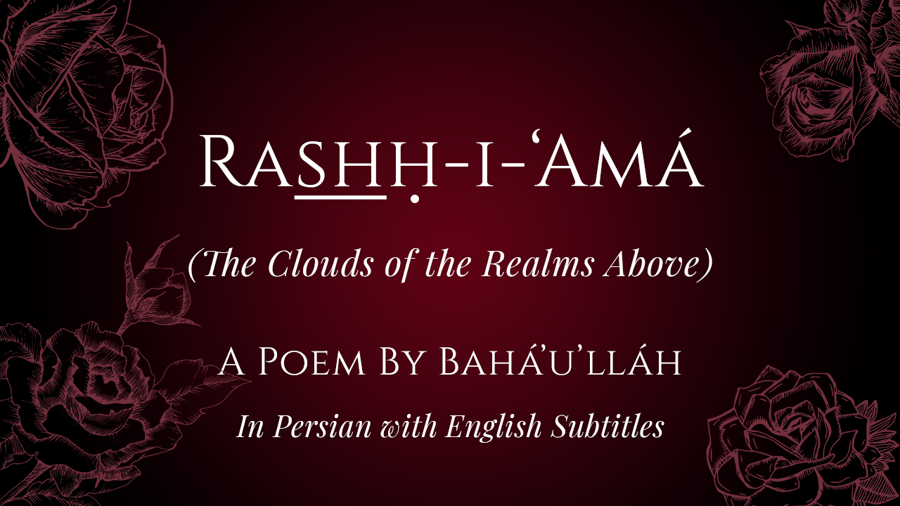 Rashḥ-i-‘Amá (The Clouds of the Realms Above) is believed to be the earliest fruit of Baha’u’llah’s Pen, one of the rare to have been revealed in His native land of Persia. Rashḥ-i-‘Amá, revealed during His four-month imprisonment in the Siyáh-Chál, is a poetic reflection on the first intimations of His station as a Manifestation of God and contains subtle references to the outpouring of Bahá'u'lláh’s Revelation, and on the exalted relationship between God and His Manifestation and between the Manifestation of God and humanity.
