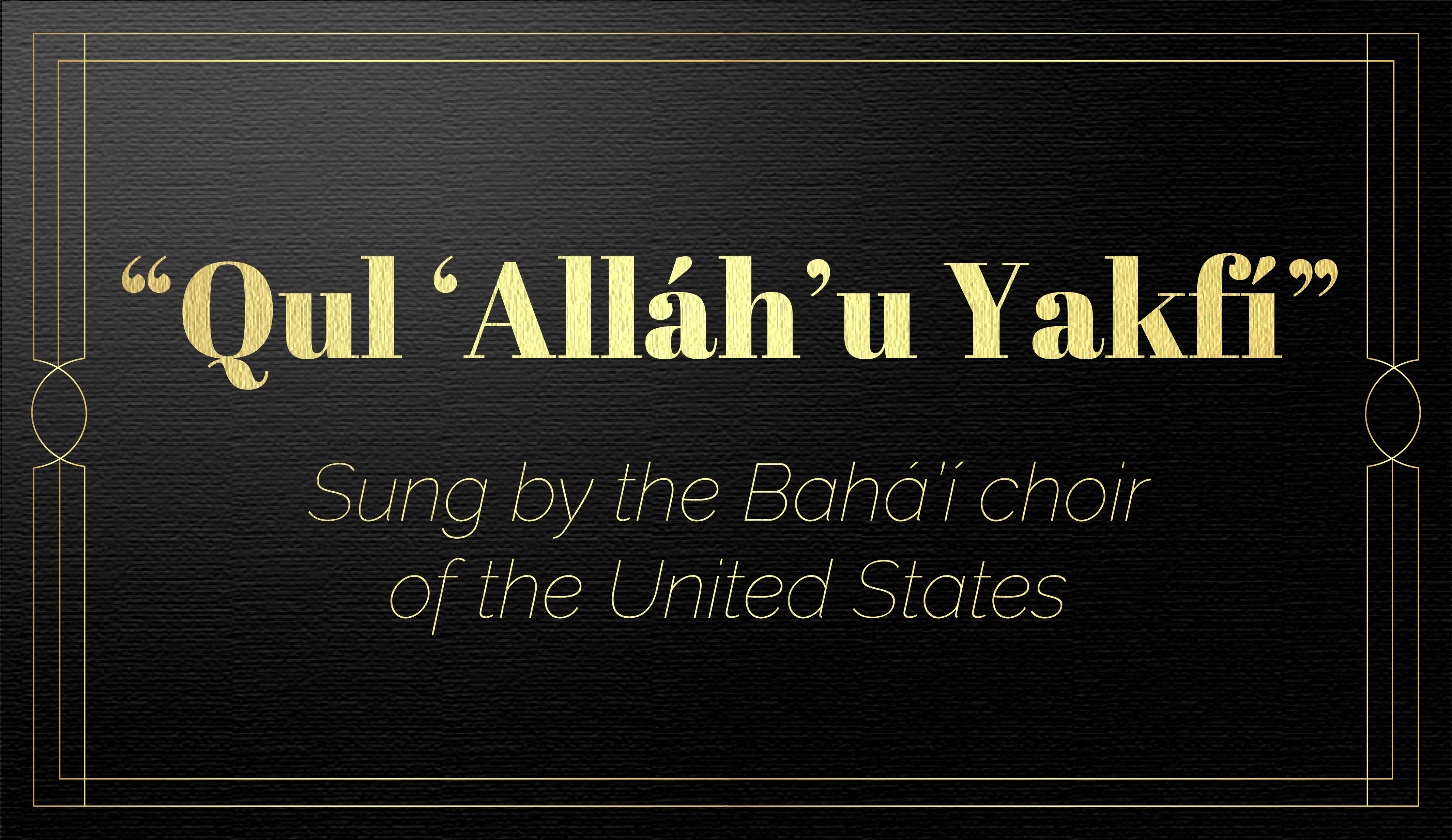 Click on the graphic above to listen to "Qul 'Alláh'u Yakfí" (Say God is sufficient unto me), sung by the Bahá'í choir of the United States. This is the song Bahá'u'lláh taught His fellow-prisoners, and which they would sing throughout the night, the powerful, joyful echoes of which were heard all the way to the Sháh's palace. Source: Bahá'í Media YouTube channel.