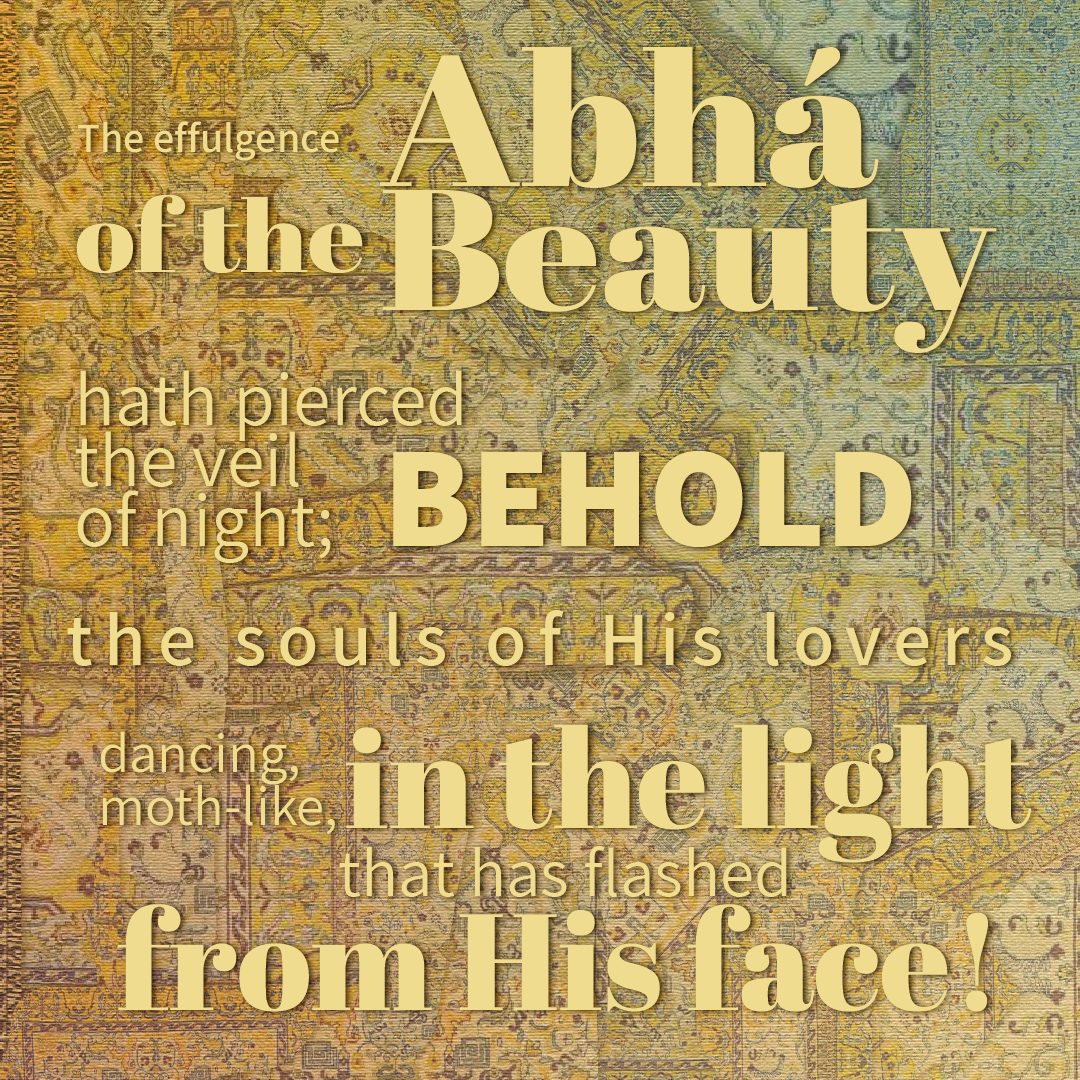 “The effulgence of the Abhá Beauty hath pierced the veil of night; behold the souls of His lovers dancing, moth-like, in the light that has flashed from His face!”