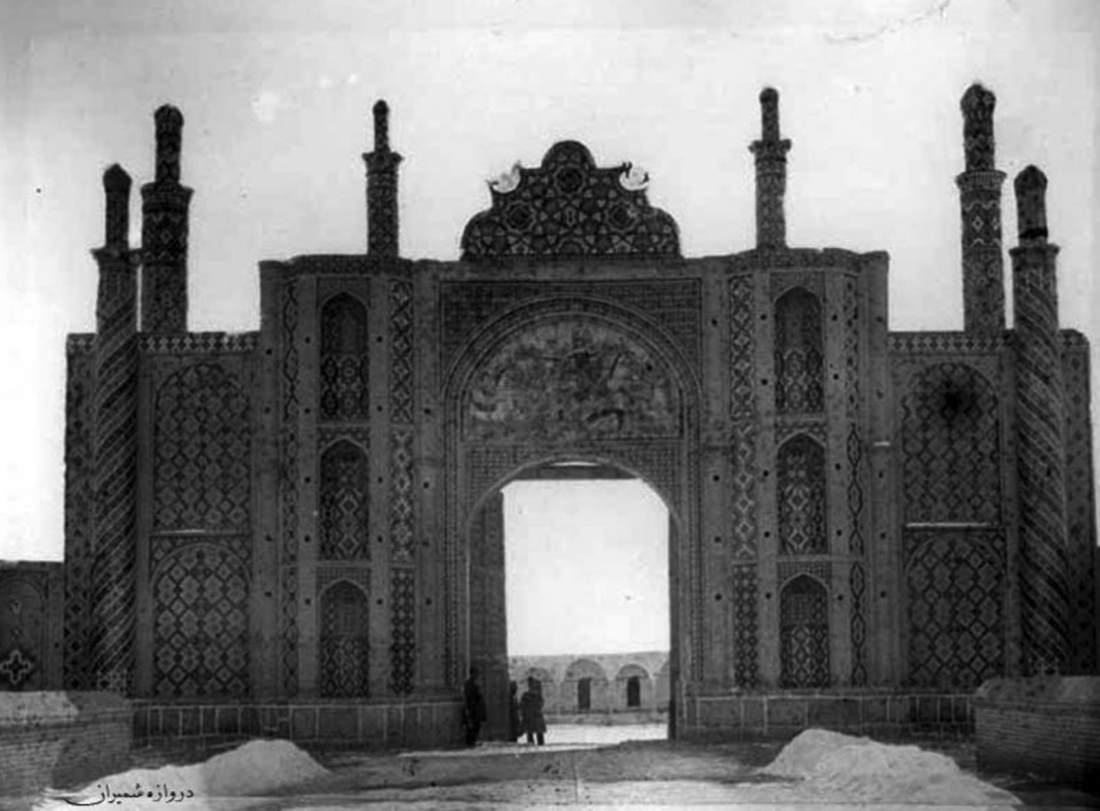 Early 1900s photograph of Shimrán gate, the gateway to the northern part of Persia, where Mírzá Musá brought Ṭáhirih. The gate was also close to the home of Bahá'u'lláh. Wikimedia Commons.