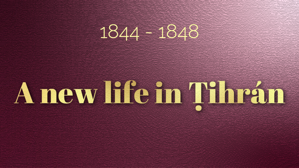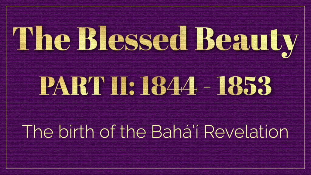 This part covers the life of Bahá’u’lláh from the age of 27 in 1844, to the age of 36 in 1853.