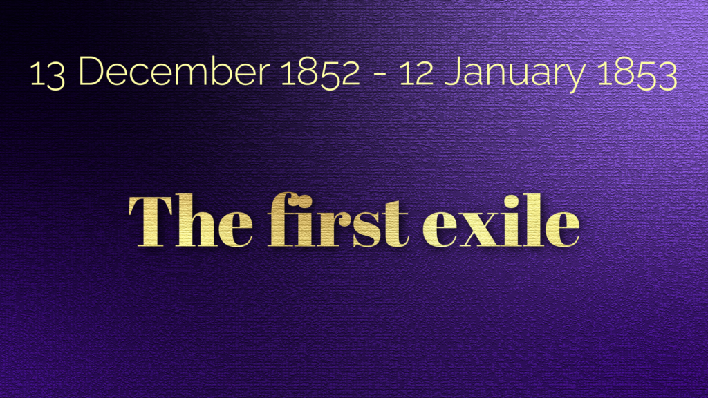 Bahá'u'lláh's relative peace and tranquility after His release from four hellish months in the Siyáh-Chál did not last long. The Persian government soon handed Bahá'u'lláh their decision: He had one month to leave Persia with His family, to a land of exile of His choosing, never to return, in effect, an expulsion from His native land.