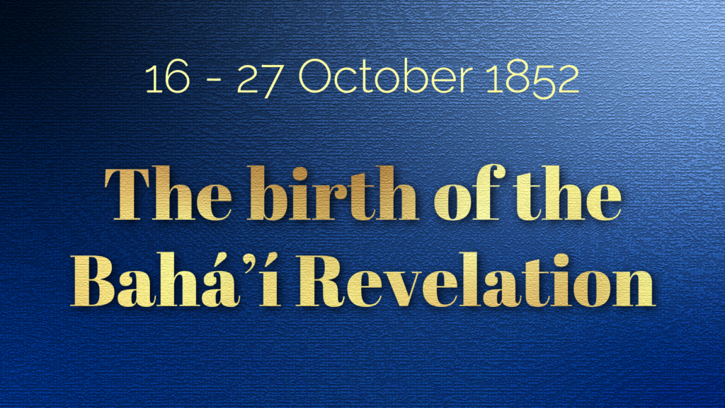 “The intimation of His Revelation to Bahá’u’lláh in the Síyáh-Chál of Ṭihrán, in October 1852, marks the birth of His Prophetic Mission…”