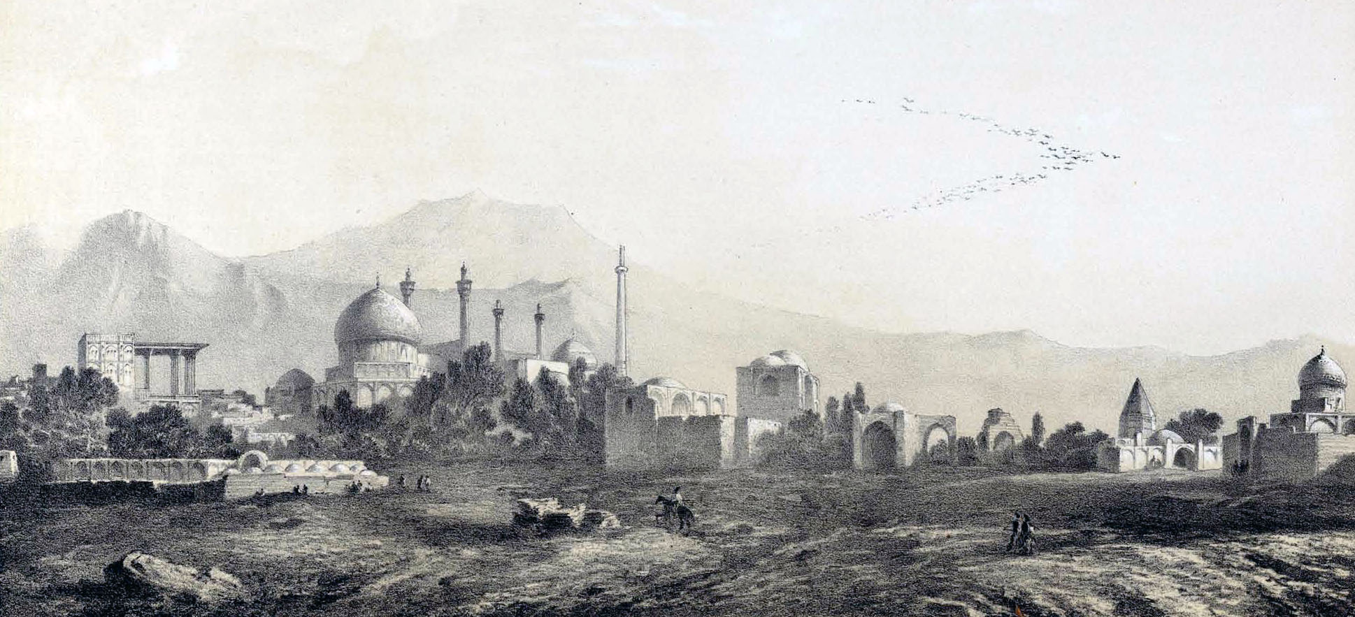 A modern photograph of the Khán-i-Avámíd (Inn of the Pillars), purposefully not showing the distinctive clocktower that did not exist at the time when the Bahá'ís resided in the Khán. Source: Wikimedia Commons.