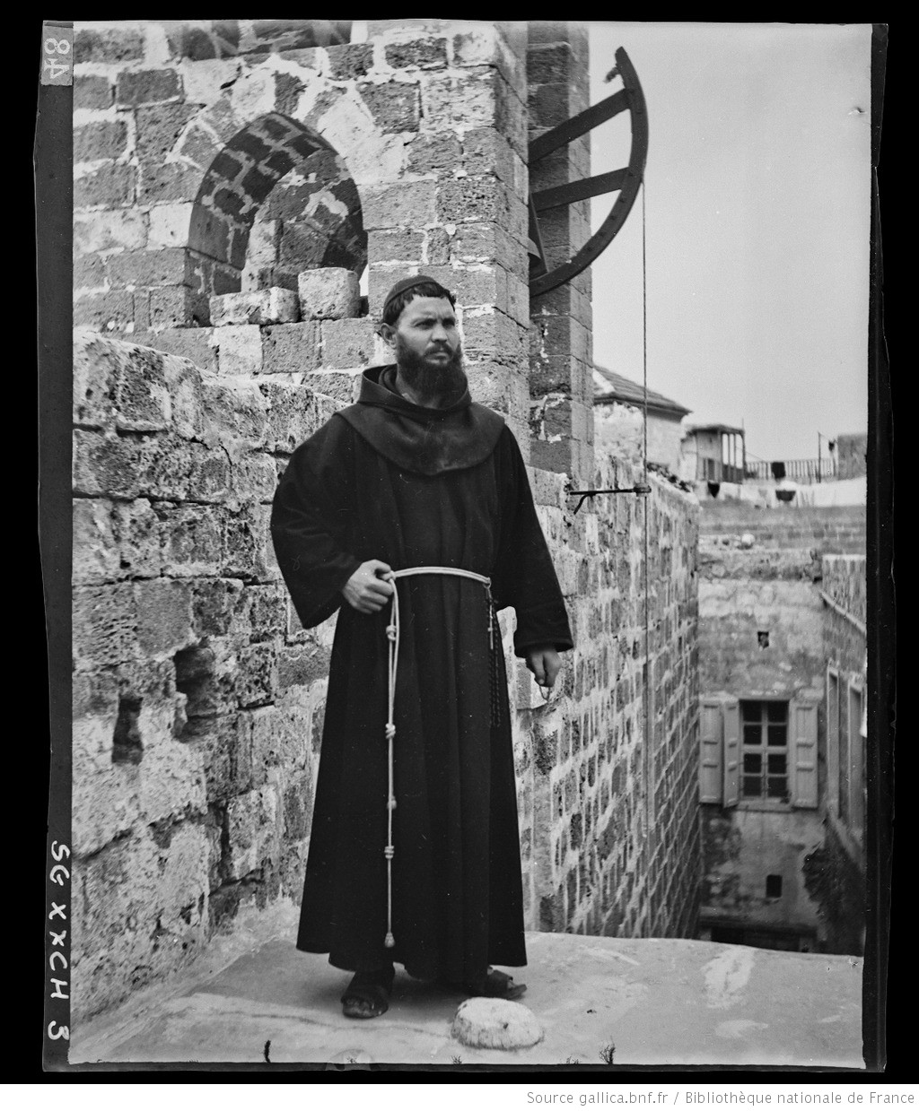 In an homage to the Christian neighborhood of ‘Akká in which the Holy Family lived almost the entire duration of their residence in the city (except for a few months in the Muslim quarter in the house of Rabi’ih), a 19th century photograph of a Franciscan father in ‘Akká. Source: Wikimedia Commons.