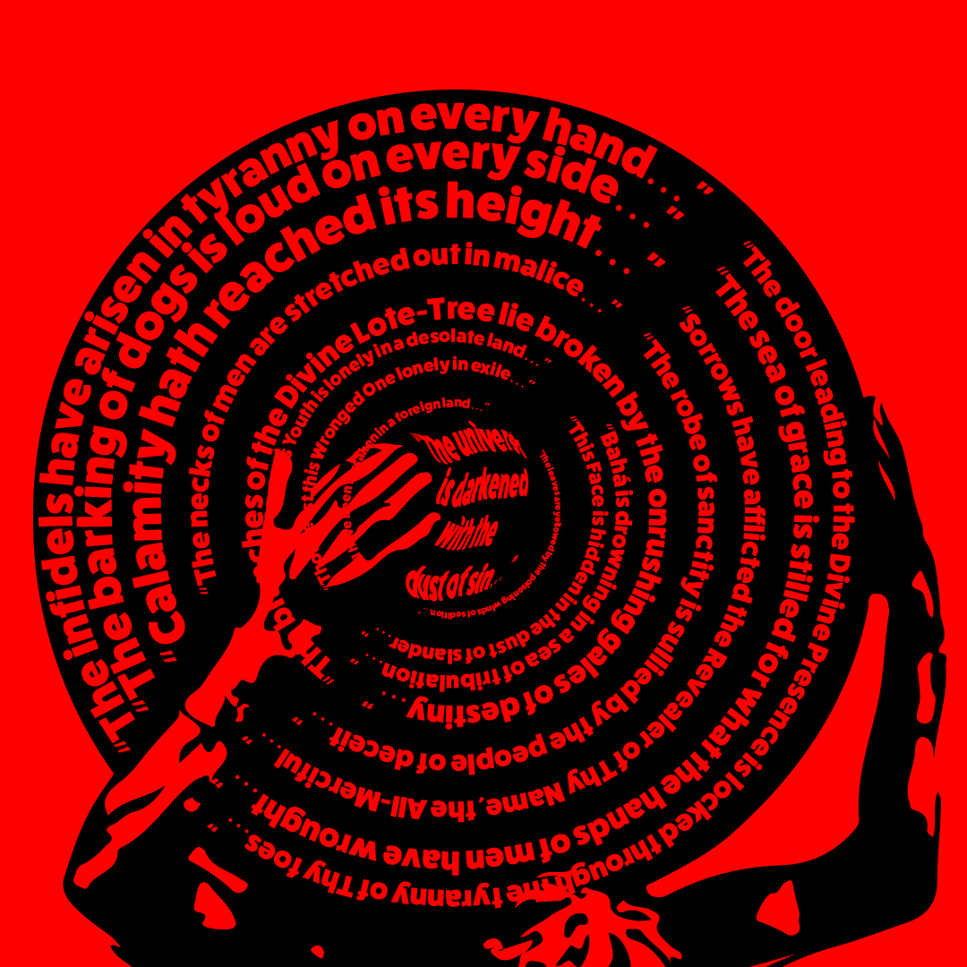 “The infidels have arisen in tyranny on every hand…Calamity hath reached its height…The necks of men are stretched out in malice…Abasement hath reached its lowest depth…Sorrows have afflicted the Revealer of Thy Name, the All-Merciful…Thou seest this Wronged One lonely in exile…I have been forsaken in a foreign land…Bahá is drowning in a sea of tribulation…This Face is hidden in the dust of slander…The robe of sanctity is sullied by the people of deceit…The leaves are yellowed by the poisoning winds of sedition…The universe is darkened with the dust of sin…This Youth is lonely in a desolate land…”