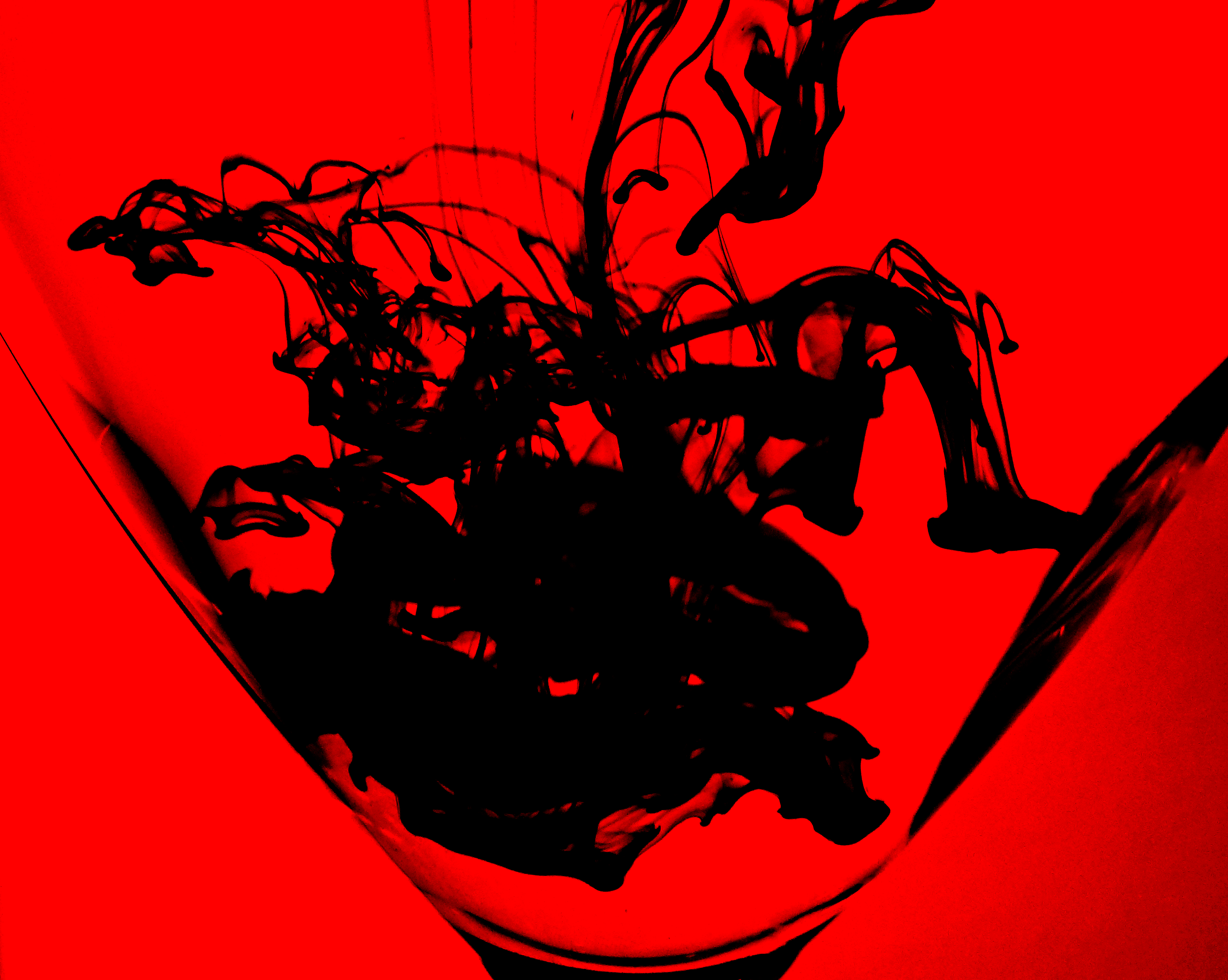 An abstract representation of the creeping in of the Azalís into the Bahá'í community of ‘Akká, symbolized by black ink dropped into a clear glass of water. The Azalís took advantage of Bahá'u'lláh’s seclusion to penetrate the community. © Violetta Zein.
