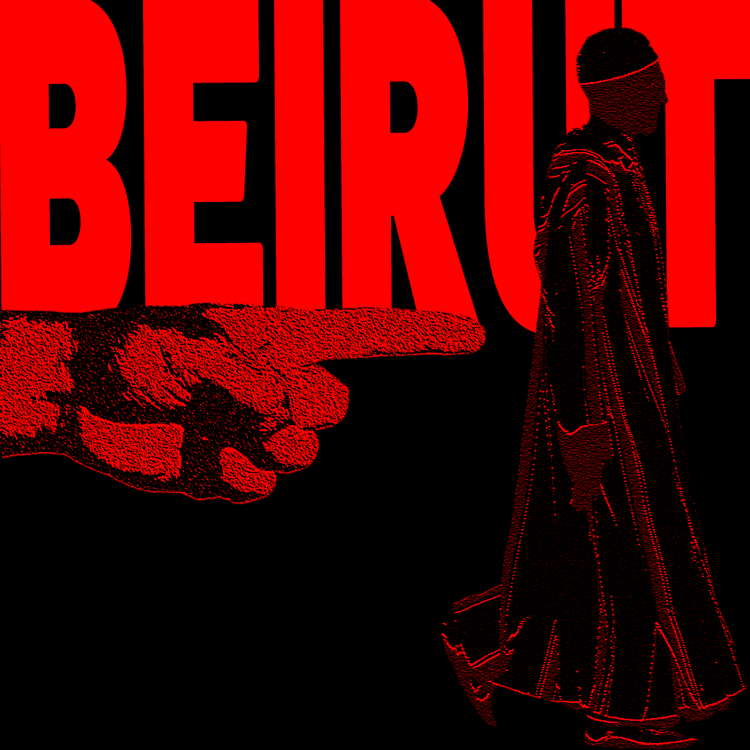 A textured 3D interpretation of Naṣir’s return to Beirut after his visit to ‘Akká. The finger represents Bahá'u'lláh’s command to return, not Bahá'u'lláh’s own finger. © Violetta Zein.