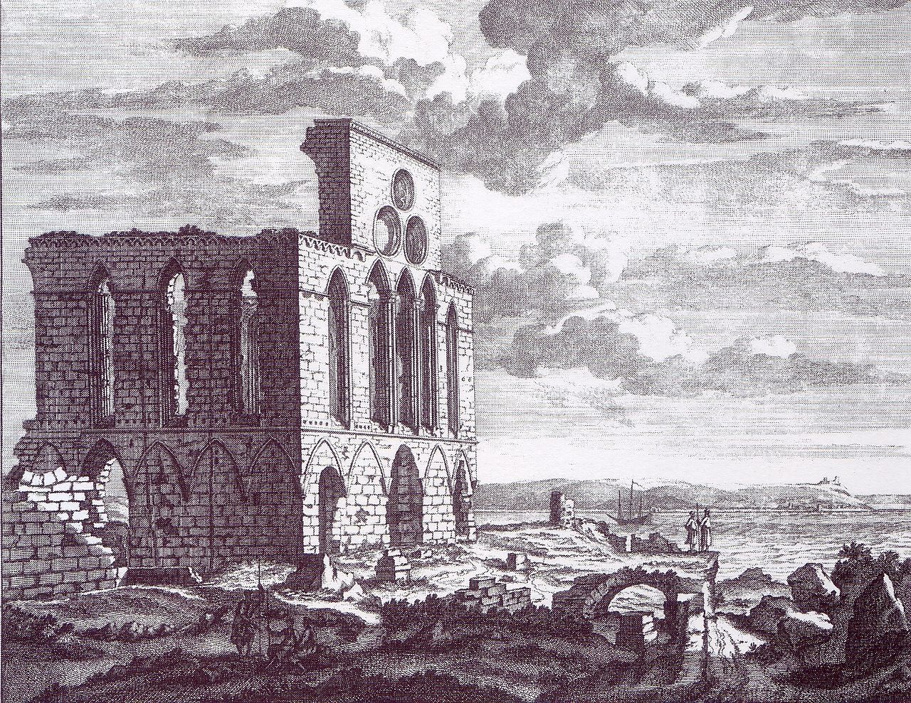 A 1682 engraving of St Andrew's Church in ‘Akká, in the vicinity of both the houses of Malik and the house of Khavvám. Source: Wikimedia Commons.
