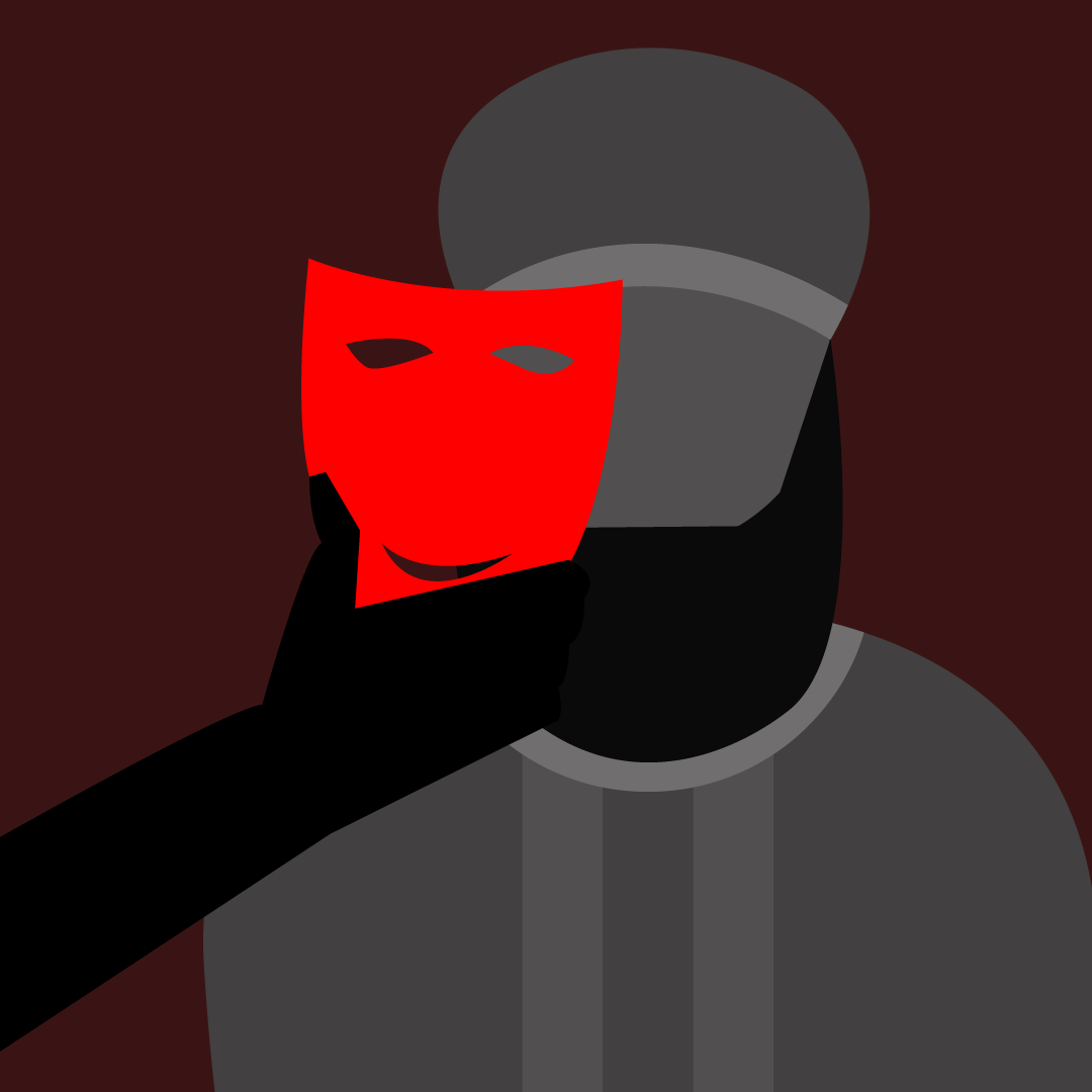 Flat illustration of a turbaned man wearing two faces. Being two-faced, duplicitous, using lies and misrepresentations, being hypocritical and disingenuous, treacherous and false, were but tools that the Azalís continually used, like claiming to be Sunní, as in the story below, if it suited the purpose they needed to accomplish. © Violetta Zein.