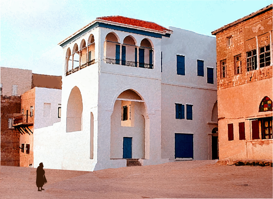 An artistic recreation of the house of ‘Abbúd with a clean-swept street. Source of the original image for inspiration of the recreation: Bahá'í Historical Facts. © Violetta Zein.