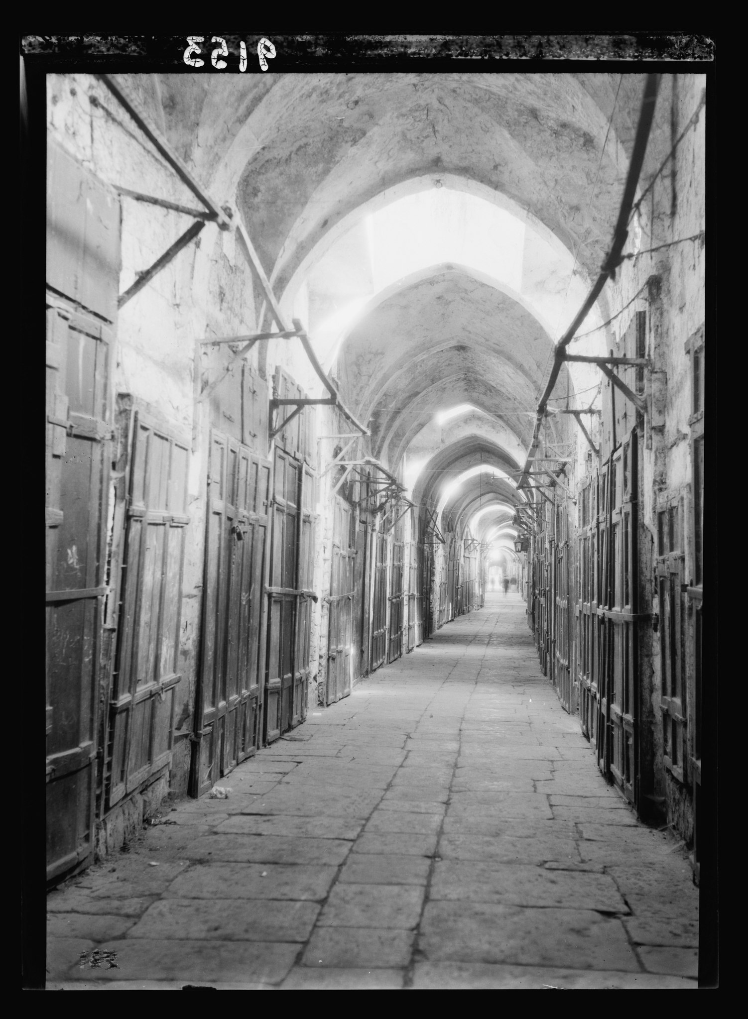 This is an illustration of what the shuttered Bahá'í shops in the ‘Akká bazaar would have looked like: this photograph shows a deserted bazaar in Jerusalem during in 1936. Source: Wikimedia Commons, originally from the G. Eric and Edith Matson Photograph Collection Library of Congress.