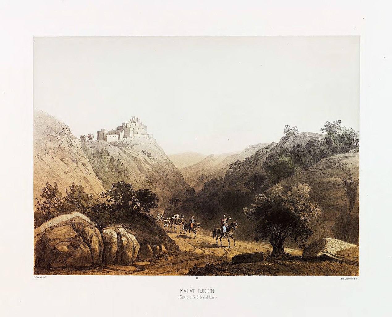 1857 watercolor of Kalat-Djedin, in the outskirts of ‘Akká. In the story below, Governor Muṣṭafá Ḍiyá Páshá indicated to Bahá'u'lláh He was free to leave the boundaries of the city. Source: Wikimedia Commons, originally from Charles William Meredith van de Velde's Le Pays d'Israel.