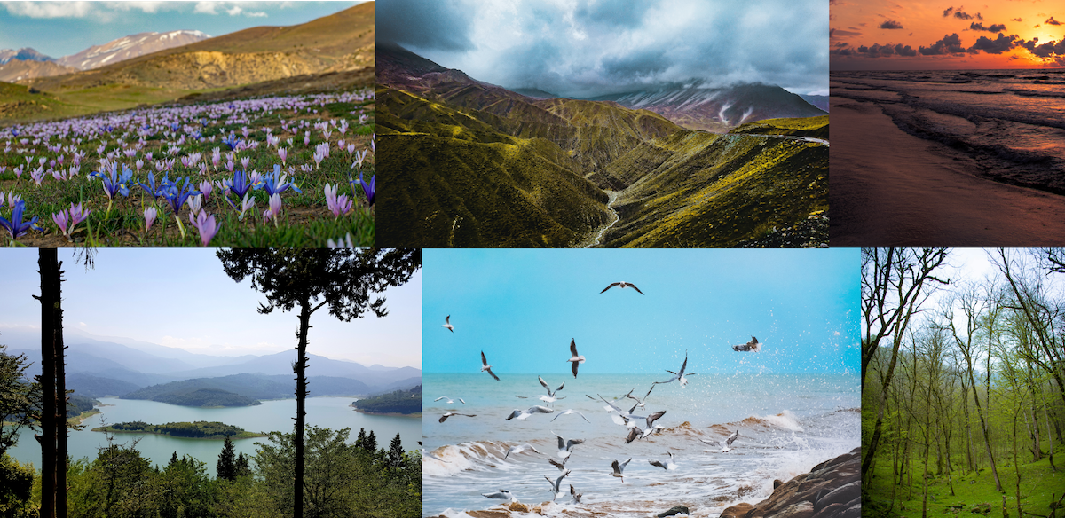 Six gorgeous photographs of Mázindarán, the northern region of Iran. Photographers, top to bottom, left to right: Moj taba Hoseini on Unsplash, Mh Afrogh on Unsplash, Mojtaba Mohtashami on Unsplash, kasra on Unsplash, Mehdi MeSSrro on Unsplash and dash masoud on Unsplash