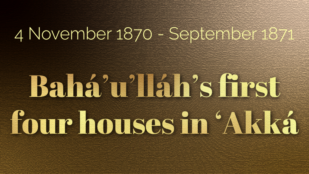 In February 1871, after three months in the house of Malik, the Ottoman authorities relocated Bahá’u’lláh and the Holy Family across the narrow lane to the house of Khavvám, still in the Christian neighborhood, where they would live for about three months.