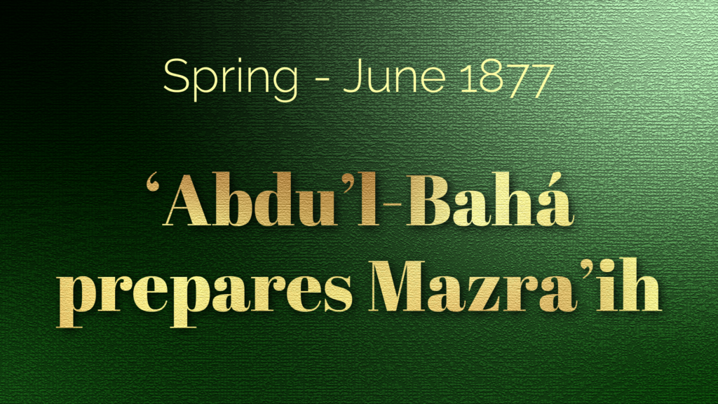 'Abdu'l-Bahá hired laborers to repair Mazra‘ih, had a bath built, hired a gardener, and prepared a carriage to take Bahá'u'lláh, an extremely rare luxury in 'Akká in 1877.