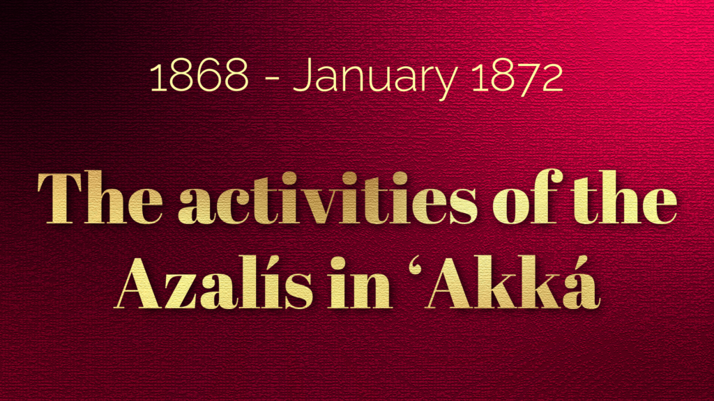 Emboldened by their new recruit and the increased freedom of living in 'Akká, the three Azalís were infused with a new sordid energy and redoubled their efforts. They embarked on a calculated campaign of abuse, calumny and intrigue, aiming to agitate the already suspicious inhabitants of ‘Akká to higher levels of hostility.