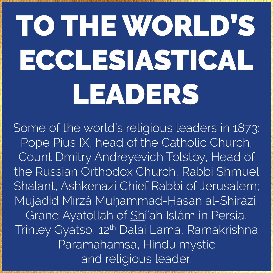 Bahá'u'lláh also addresses the ecclesiastical order of Christianity, priests, bishops and monks, announcing to them the joyful news of His Revelation, and summoning them to come out of their churches and proclaim His Cause to all mankind.