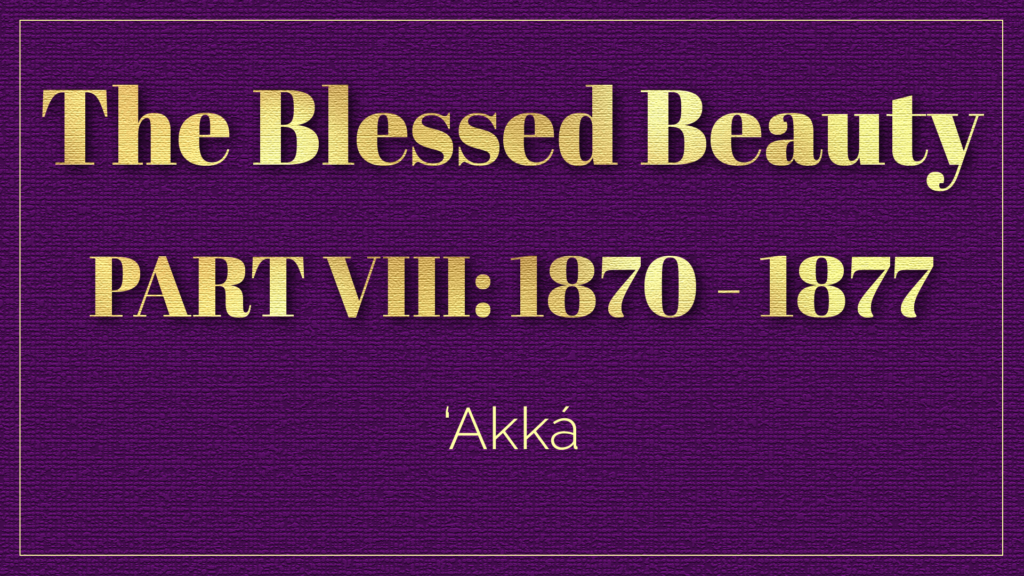 This part covers the life of Bahá’u’lláh between the age of 53 in 1870 to the age of 60 in 1877.