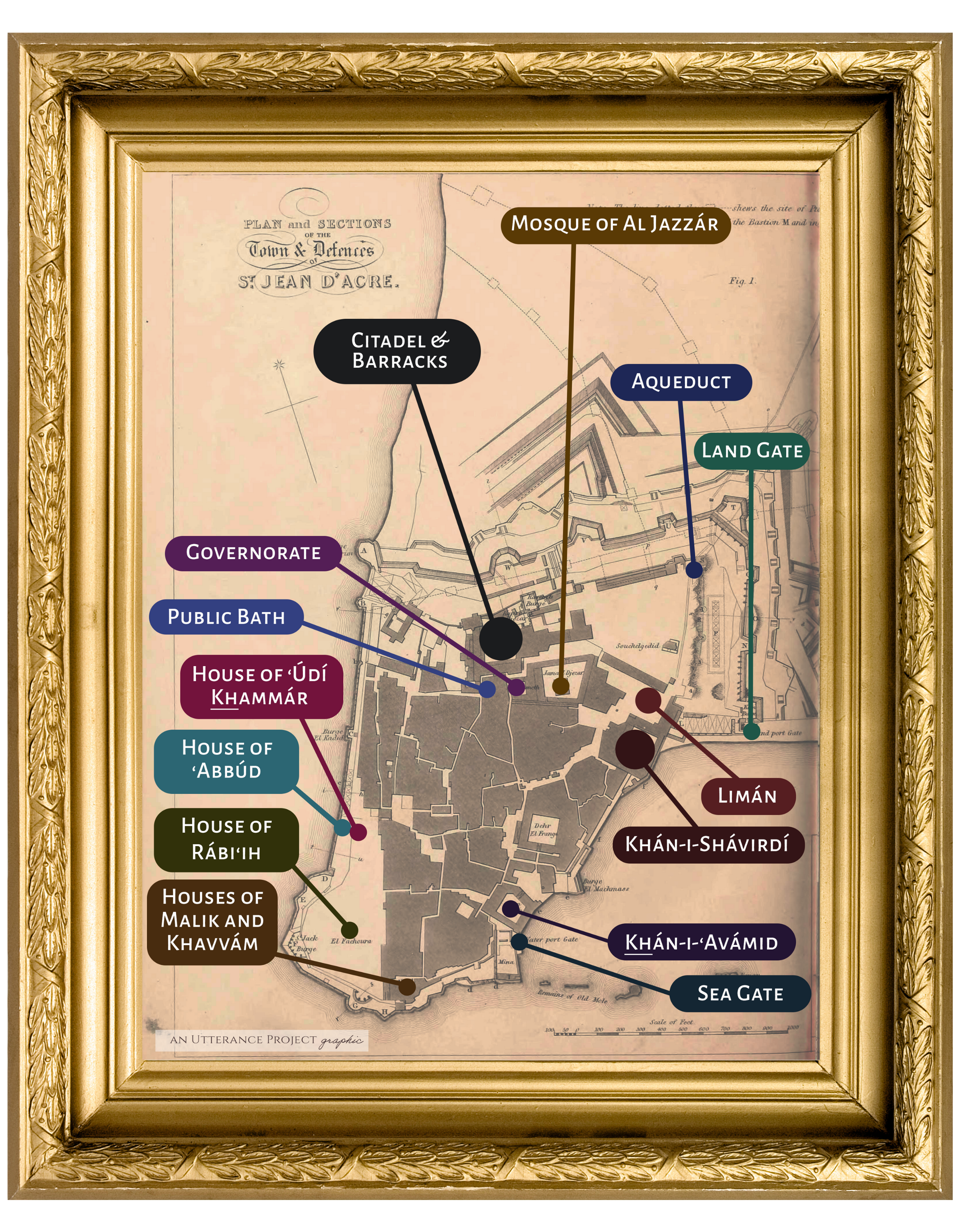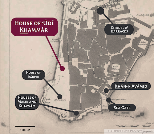 The House of ‘Udí Khammár: Balyuzi, H.M. Bahá’u’lláh: The King of Glory, pages 315 and Taherzadeh, Adib. The Revelation of Bahá’u’lláh Volume III: ‘Akká, the Early Years (1868 – 1877) page 221