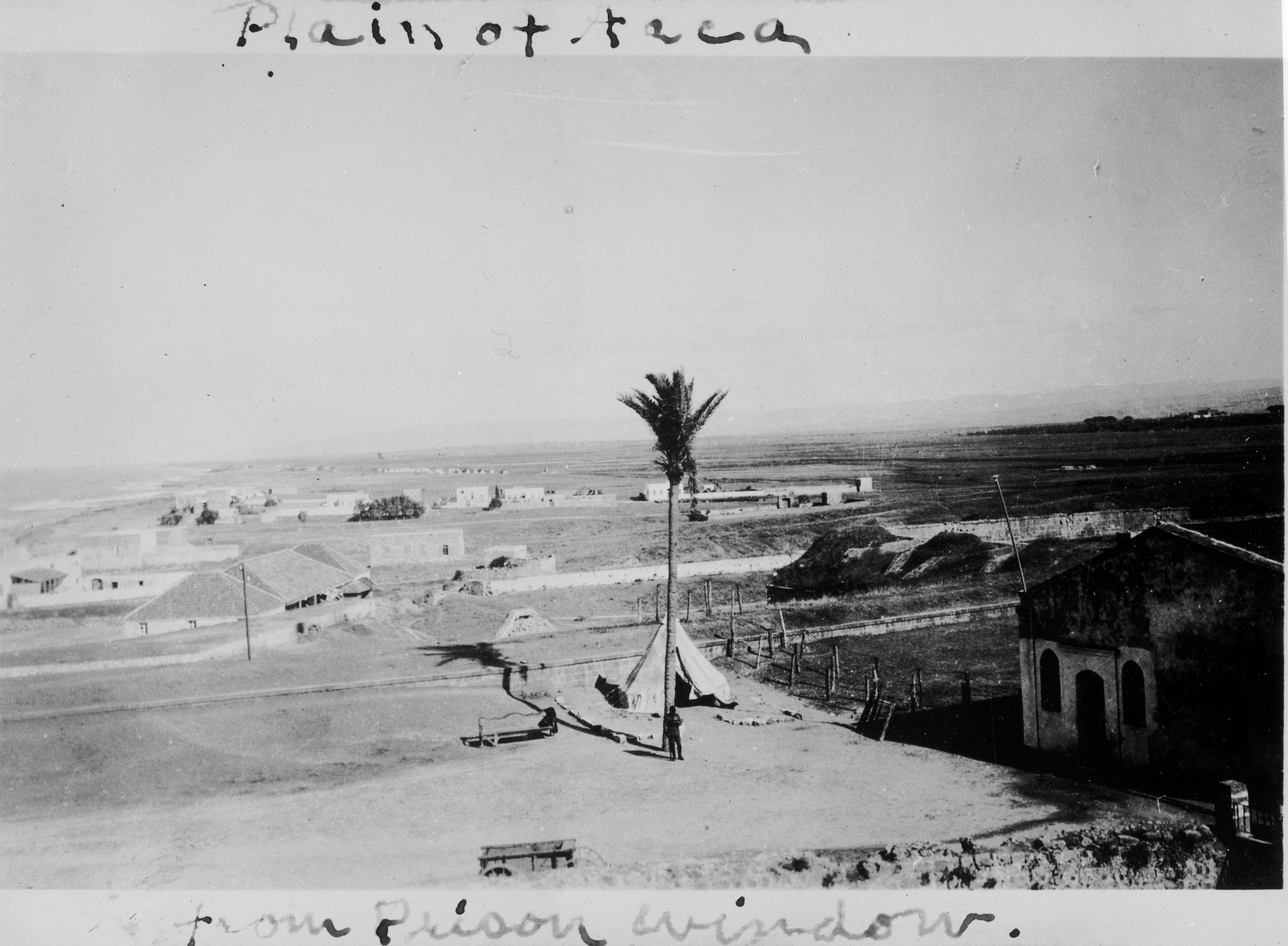 This photo, taken around 1900, shows the view from inside the prison quarters, looking north to the plain of Akka. Bahá'í World News Service.