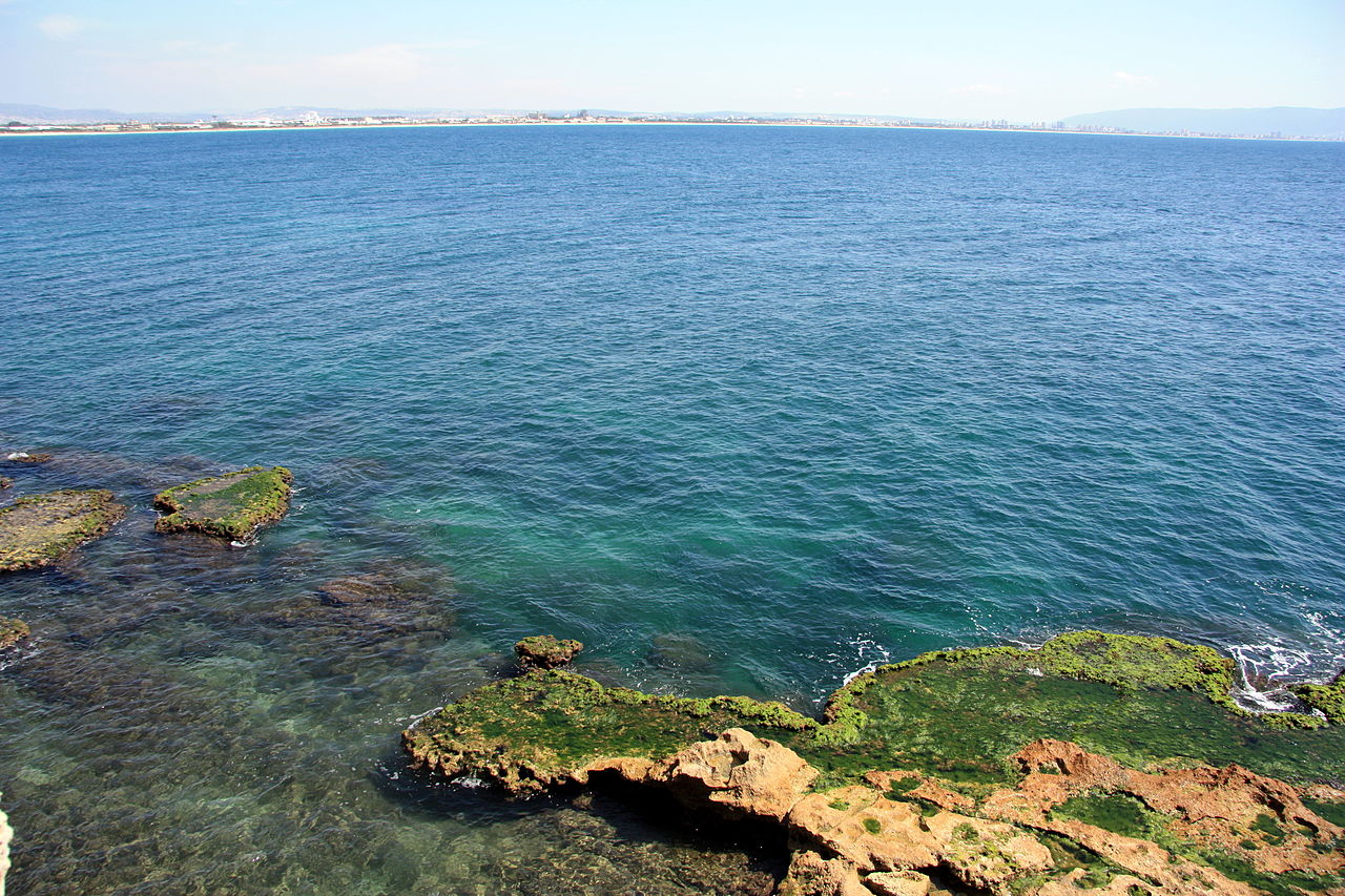 Mosque of “El Jaazar” Pasha against Haifa bay, Acre. Fritz Cohen. National Photo Collection of Israel, Photography dept. Wikimedia Commons.