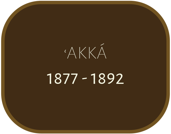 'Abdu'l-Bahá lives in 'Akká from 1868 to 1910, when He moves to Haifa permanently. This section covers the years from 1877 to 1892, when Bahá'u'lláh moves from Akka to Mazra‘ih, and finally to Bahjí in 1879 where He resides until His passing in 1892. During this period 'Abdu'l-Bahá maintains a permanent residence in 'Akká, in the house of 'Abbúd, but travels to Beirut, Lebanon, and Haifa, while also spending time in Mazra‘ih, Bahjí, and Druze villages in the 'Akká area.