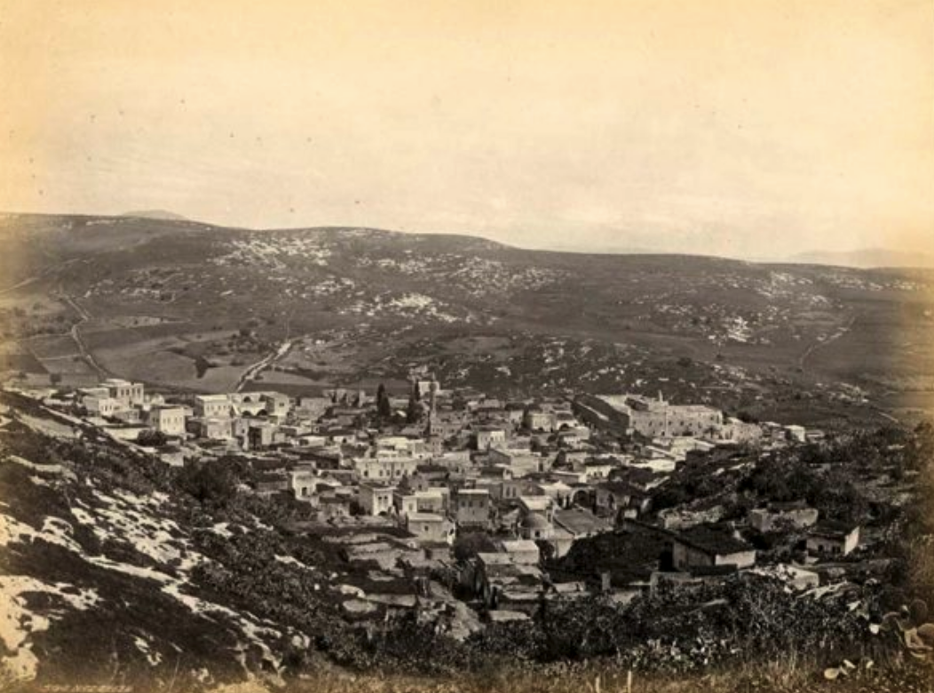 Looking down at Nazareth from the hills above. Circa 1870s Norbert Schiller Collection, Photograph by Frank Mason Good Picture scanned from original 23cm X 28cm albumen print. Photo Orientalist Website.