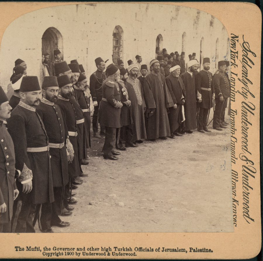 This photograph of the Mufti, the Governor and other high Ottoman officials of Jerusalem, Palestine circa 1900 probably closely resemble, in their dress and bearing, the authorities 'Abdu'l-Bahá would have met with in 'Akká. J.F. Jarvis, publishers. Library of Congress.