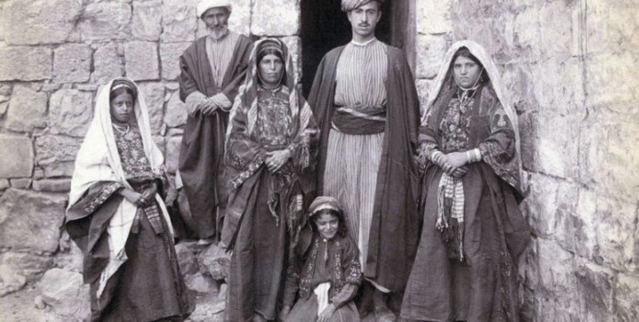 The dress of this Palestinian family of Ramallah, around 1900-1910 is a snapshot of what the people 'Abdu'l-Bahá ministered to would have looked like. Days of Palestine.