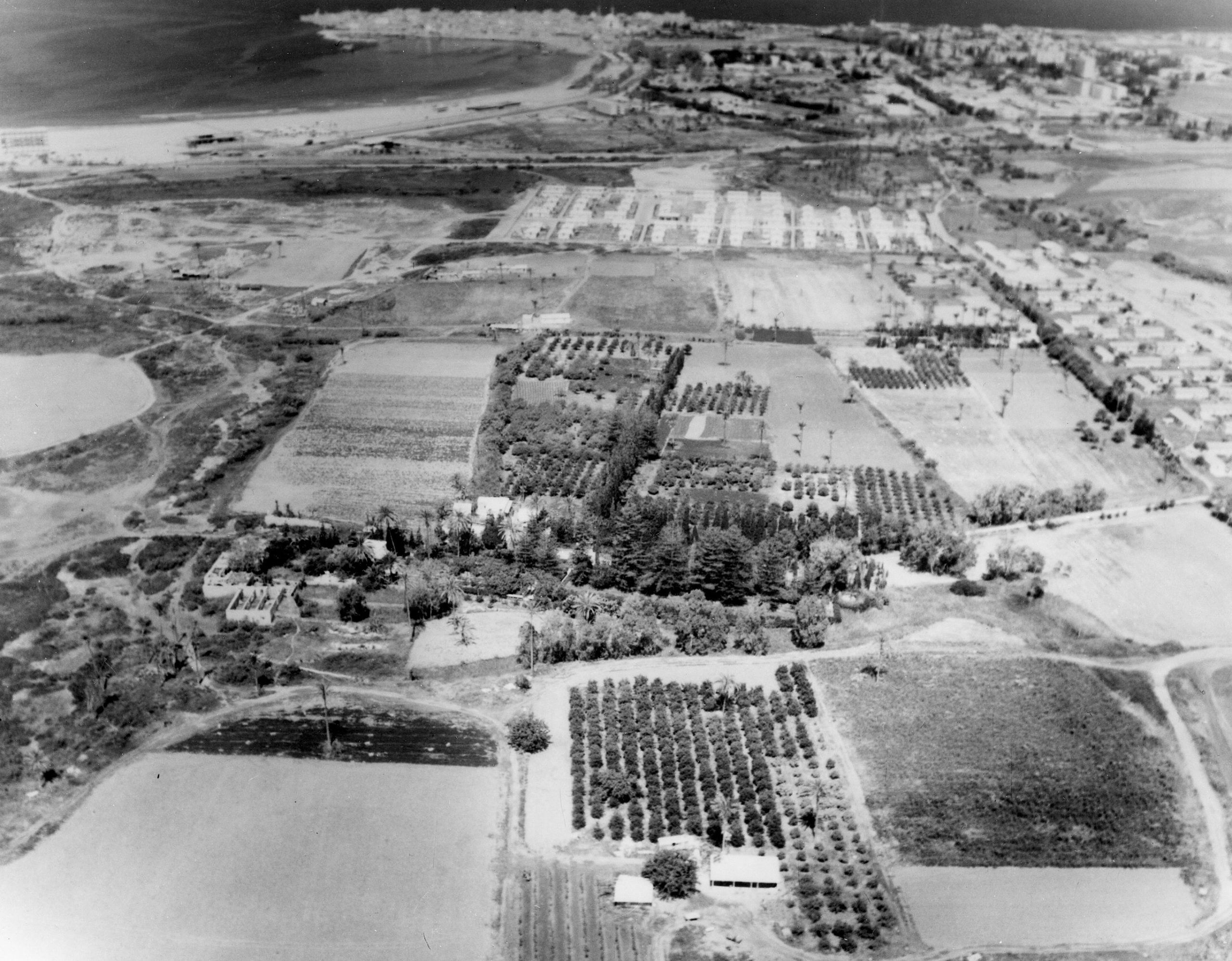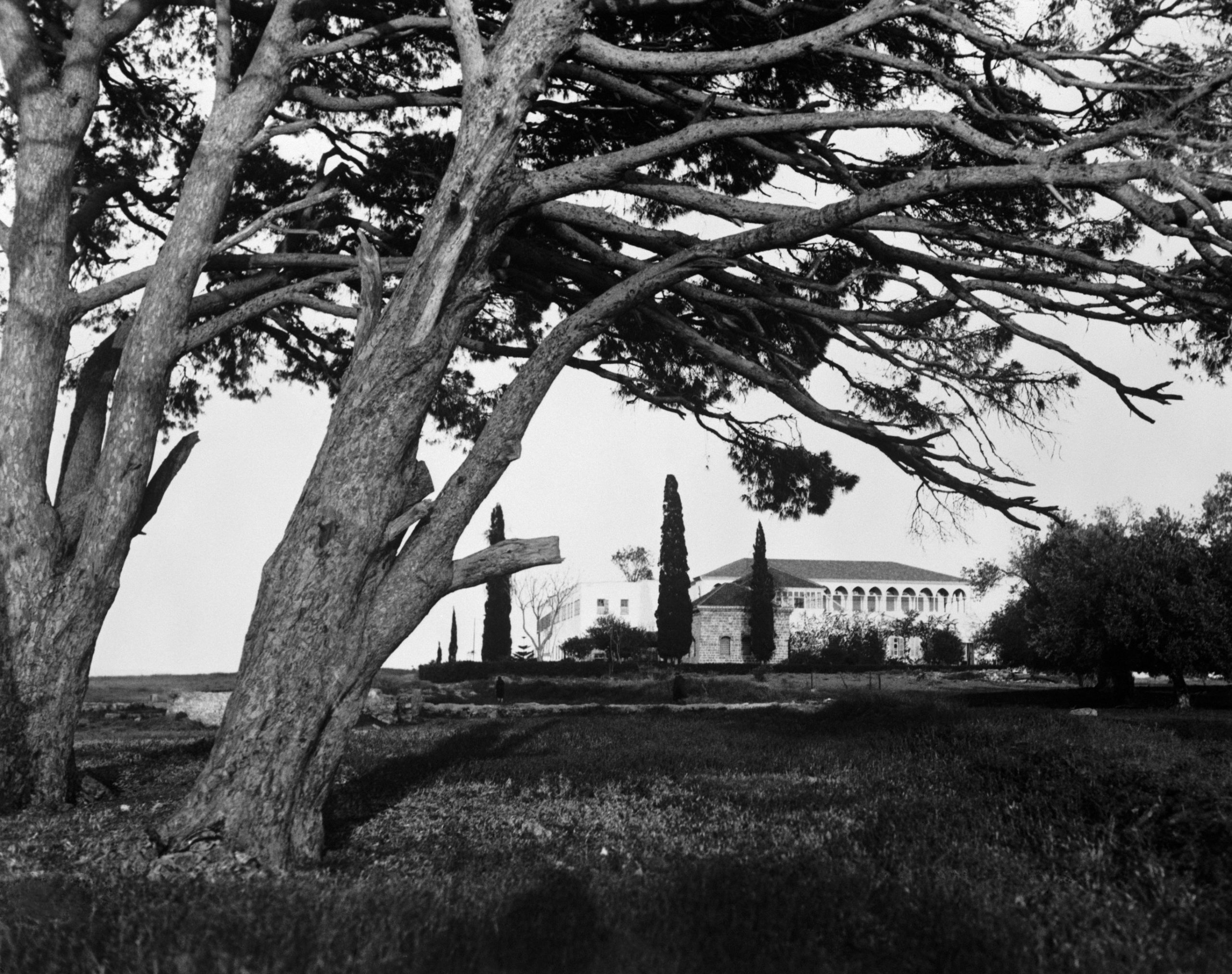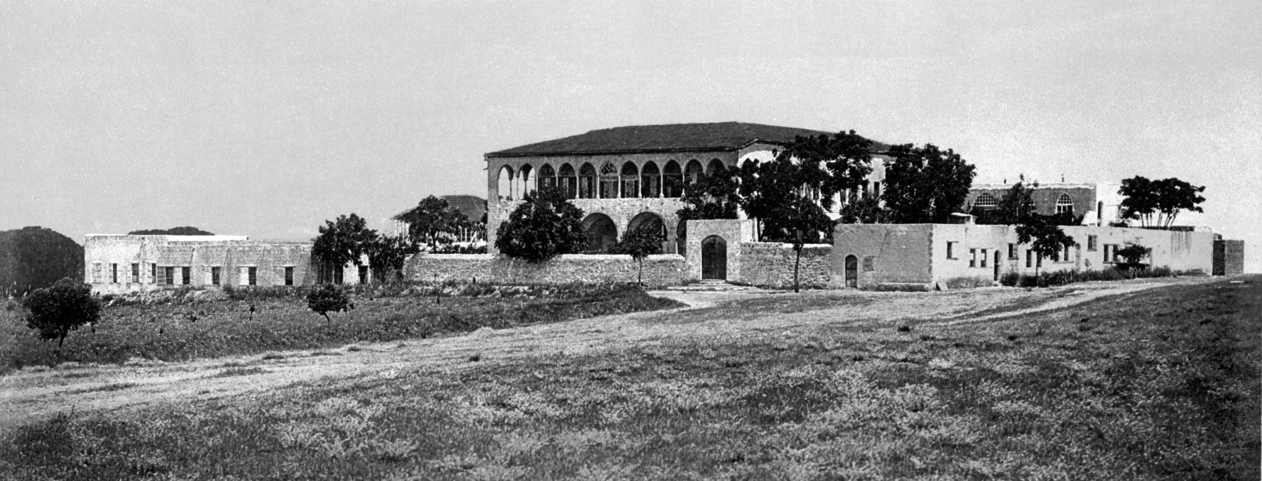 The Mansion of Bahjí and its surrounding buildings in 1952. Bahá'í Media Bank.