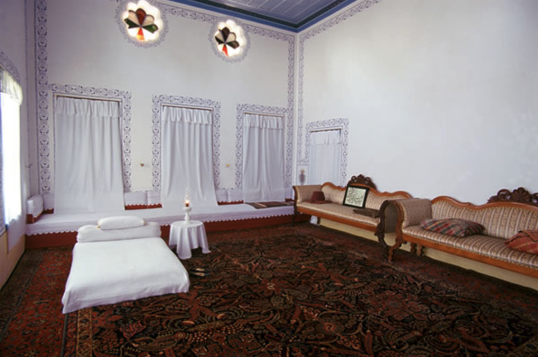Mazra'ih could not be more perfect. Built by 'Abdu'lláh Páshá as a summer residence, it is a very pleasant place, more than 7 kilometers due north of the messy turmoil of 'Akká. The Mansion is nestled in charming quiet countryside, with views of the Mediterranean Sea to the west, and the valley leading up to the Galilee hills to the east. The building at Mazra'ih is surrounded by a garden on a vast plain. Bahá'u'lláh uses the ground floor room as a reception room, and meets many believers and pilgrims here. Bahá'u'lláh's bedroom is on the upper floor of the mansion, and boasts a balcony overlooking the beautiful countryside.