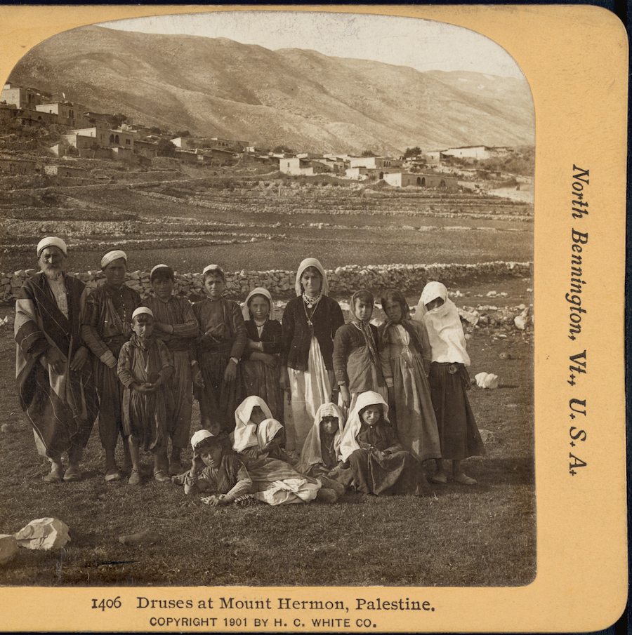 Example of what Druze villagers would appear like, some 20 years after Bahá'u'lláh and 'Abdu'l-Bahá spent time in their villages. These are Druzes of Mount Hermon, circa June 1901. Photographer H.C. White Co. Library of Congress.