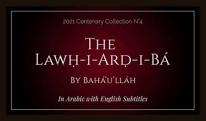 Listen to the full text of the Lawḥ-i-Arḍ-i-Bá, recited in Arabic with English subtitles and transliteration, a production of The Utterance Project as a part of the Centenary Collection, dedicated to a spiritual preparation for the Centenary of the Ascension of 'Abdu'l-Bahá.