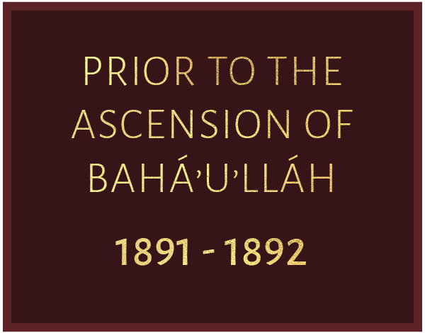 Approximately one year before He passes away, Bahá’u’lláh reveals a document, unparalleled in the annals of religious history. Written entirely in Bahá'u'lláh's own handwriting, the Kitáb-i-‘Ahd, or “Book of the Covenant,” is Bahá'u'lláh's Will and Testament. Never before has a Manifestation of God so explicitly and clearly designated a successor and provided for the steady growth, protection and safety of His Faith. The Kitáb-i-‘Ahd is not made public at this time but kept for safekeeping in a box.