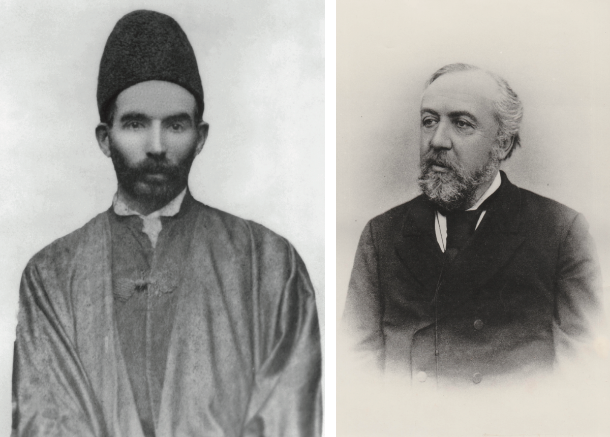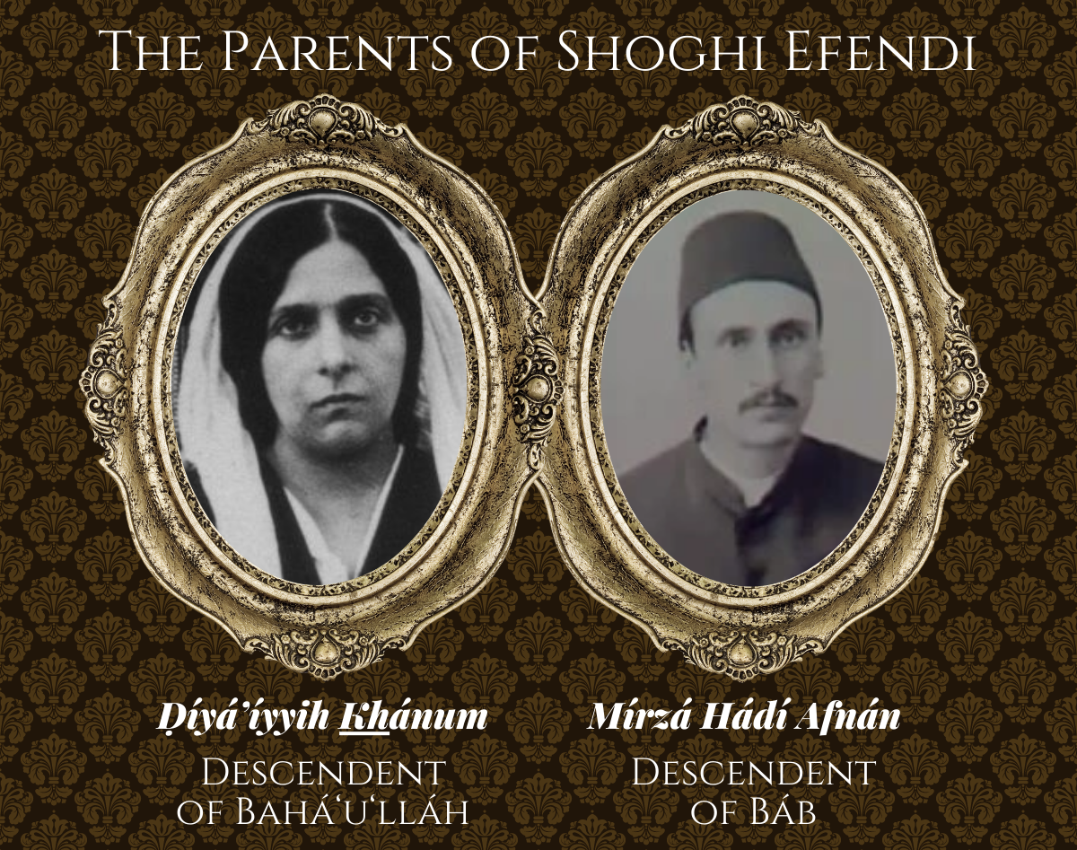 Left: Ḍíyá’íyyih Khánum, 'Abdu'l-Bahá's eldest daughter, mother of Shoghi Effendi. Bahaipedia. Right: Mírzá Hádí Afnán, the father of Shoghi Effendi. Bahá'í Culture.