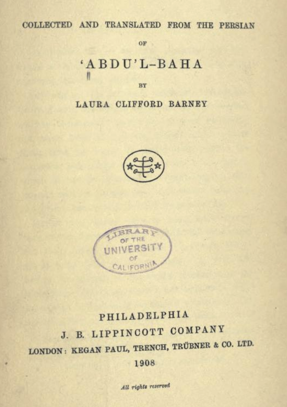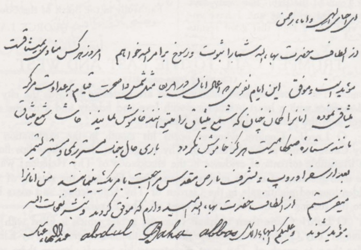 1902 – Shoghi Effendi’s first Tablet from ‘Abdu’l-Bahá: Rabbání, Rúḥíyyih. The Priceless Pearl, page 8