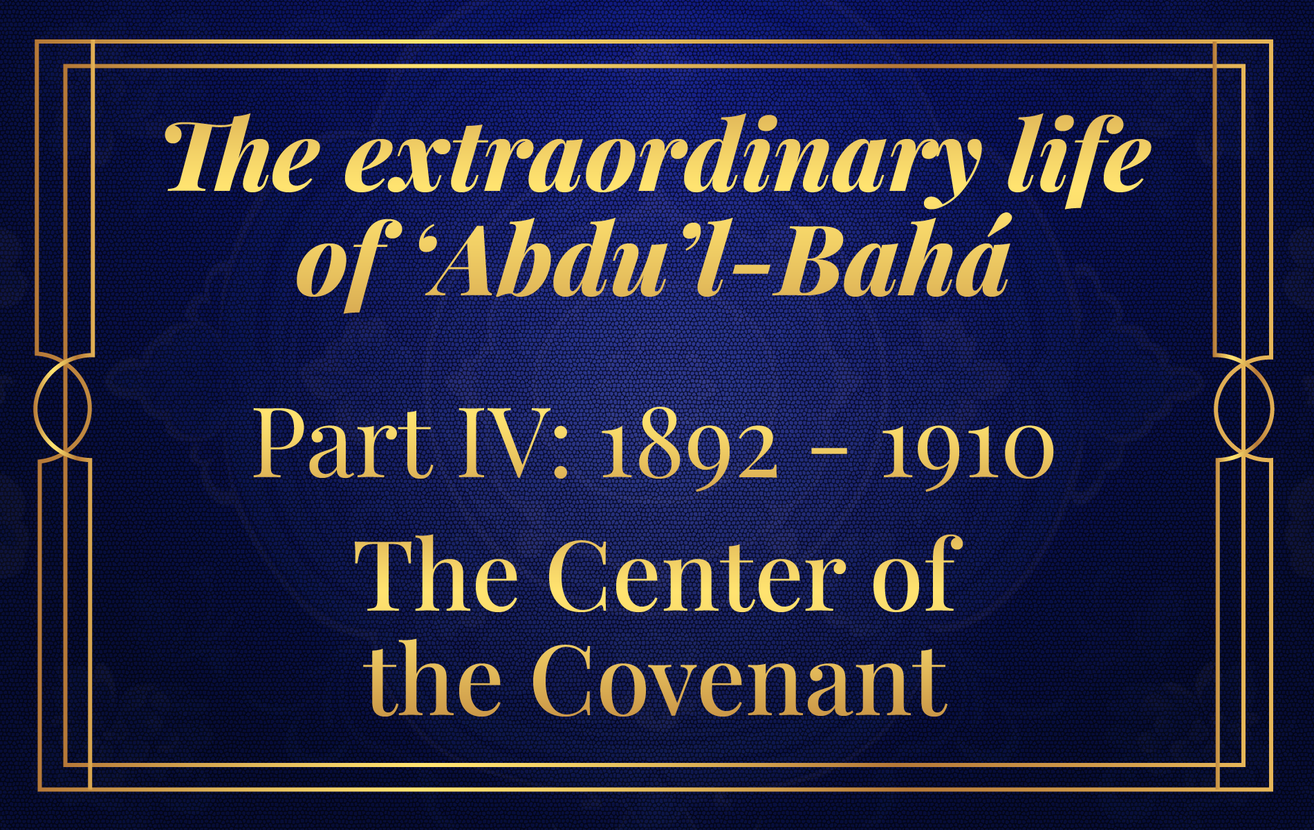 This part covers the life of ‘Abdu’l-Bahá from the age of 48 in 1892 to the age of 66 in 1910.