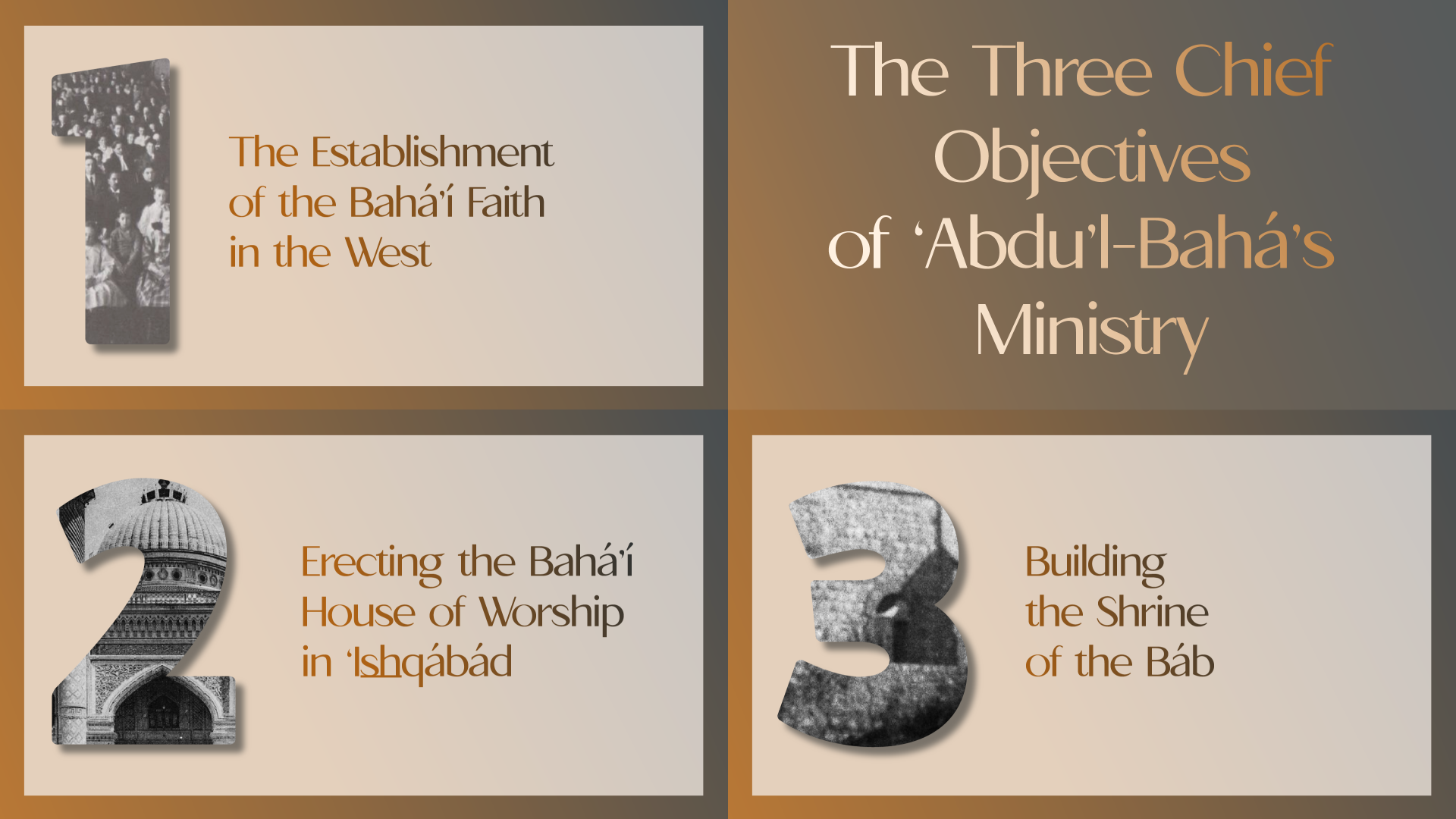 The second is the building of the Bahá'í House of Worship in 'Ishqábád.
