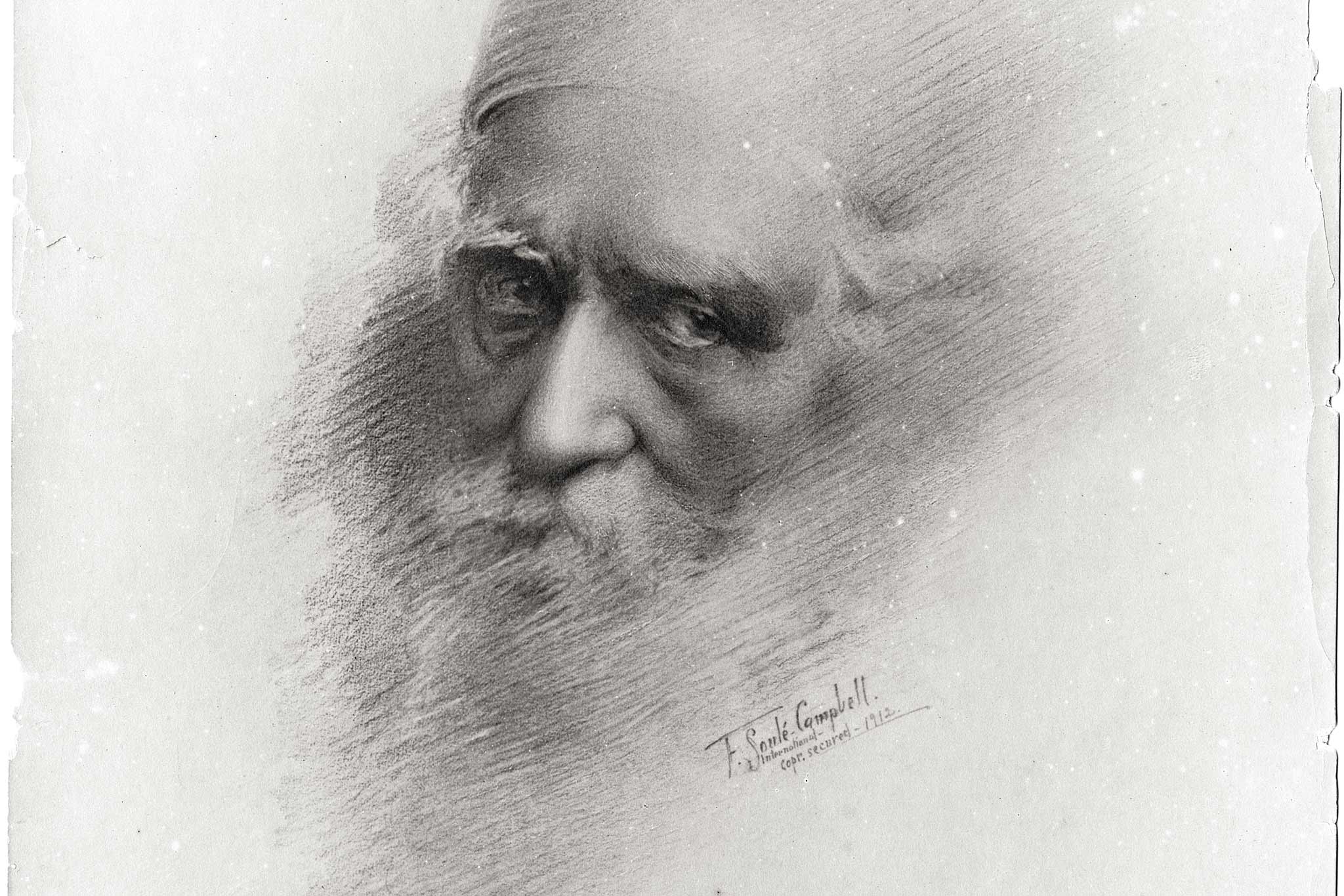 'Abdu'l-Bahá, Center of the Covenant of Bahá'u'lláh. This colorized portrait of Him in Paris in October 1911, was the first He allowed since 1868 in Adrianople, and was taken exactly 19 years after the Ascension of Bahá'u'lláh. 'Abdu'l-Bahá’s signature in Persian and in English can be seen in the bottom right. Source: Bahá'í Media Bank © Bahá'í International Community.